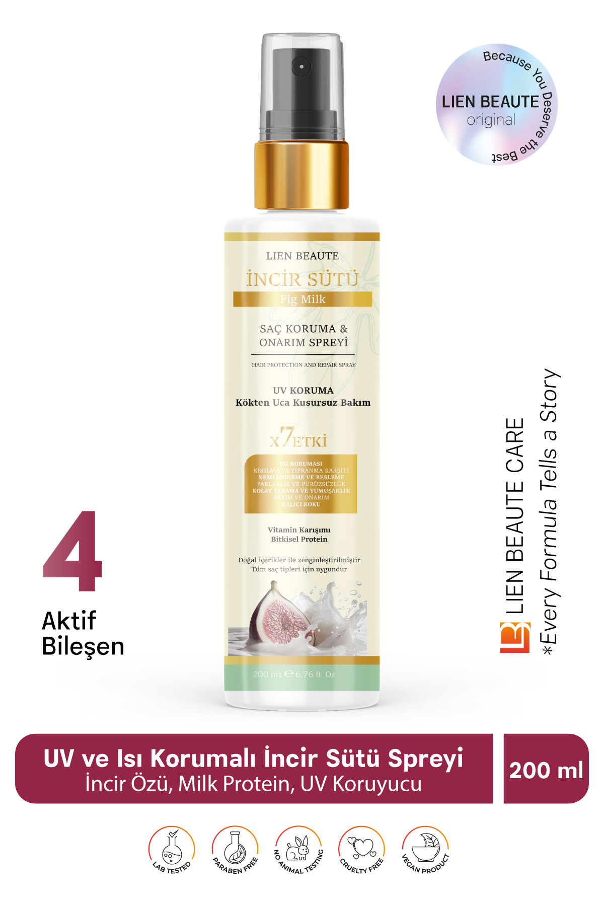 UV Korumalı İncir Sütü Saç Koruma ve Onarım Spreyi x7 Etki, Vitamin Karışımı & Bitkisel Protein