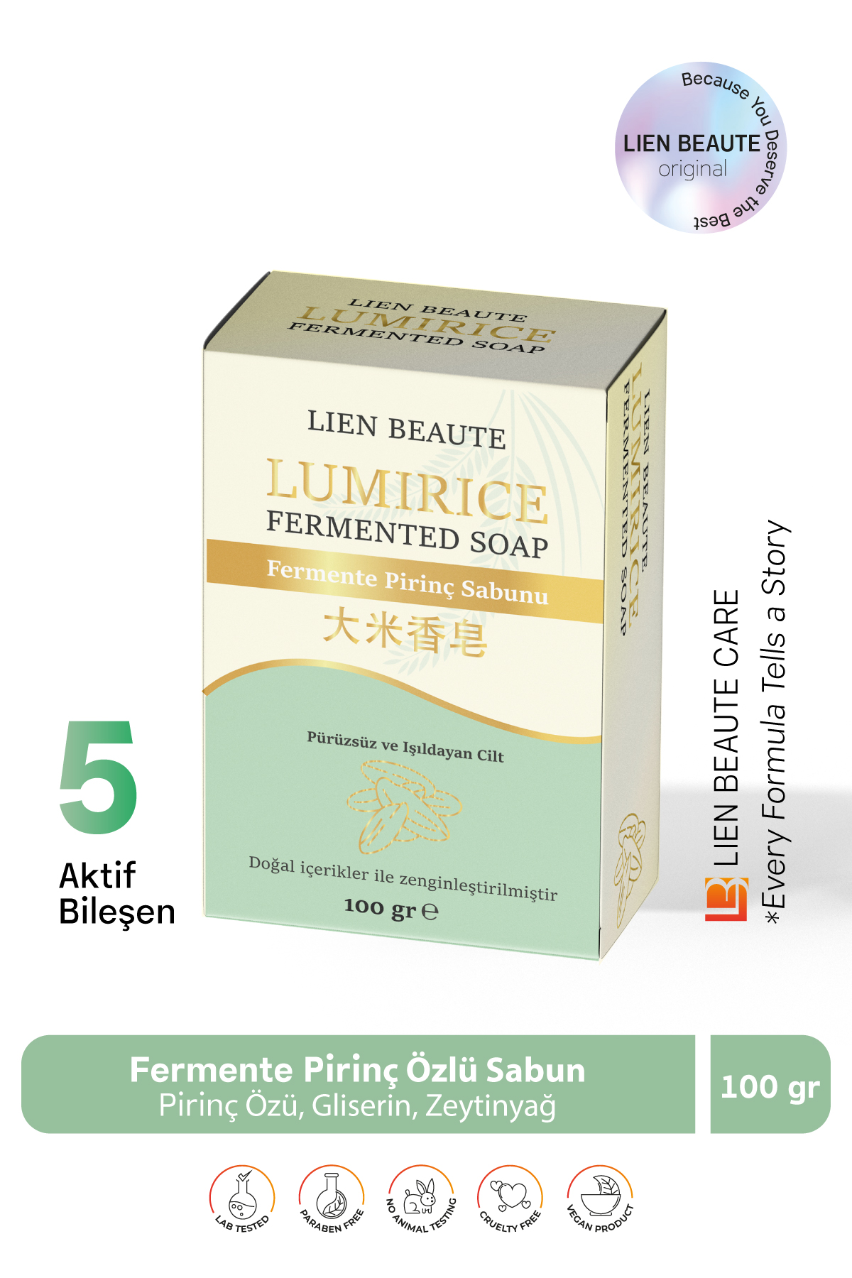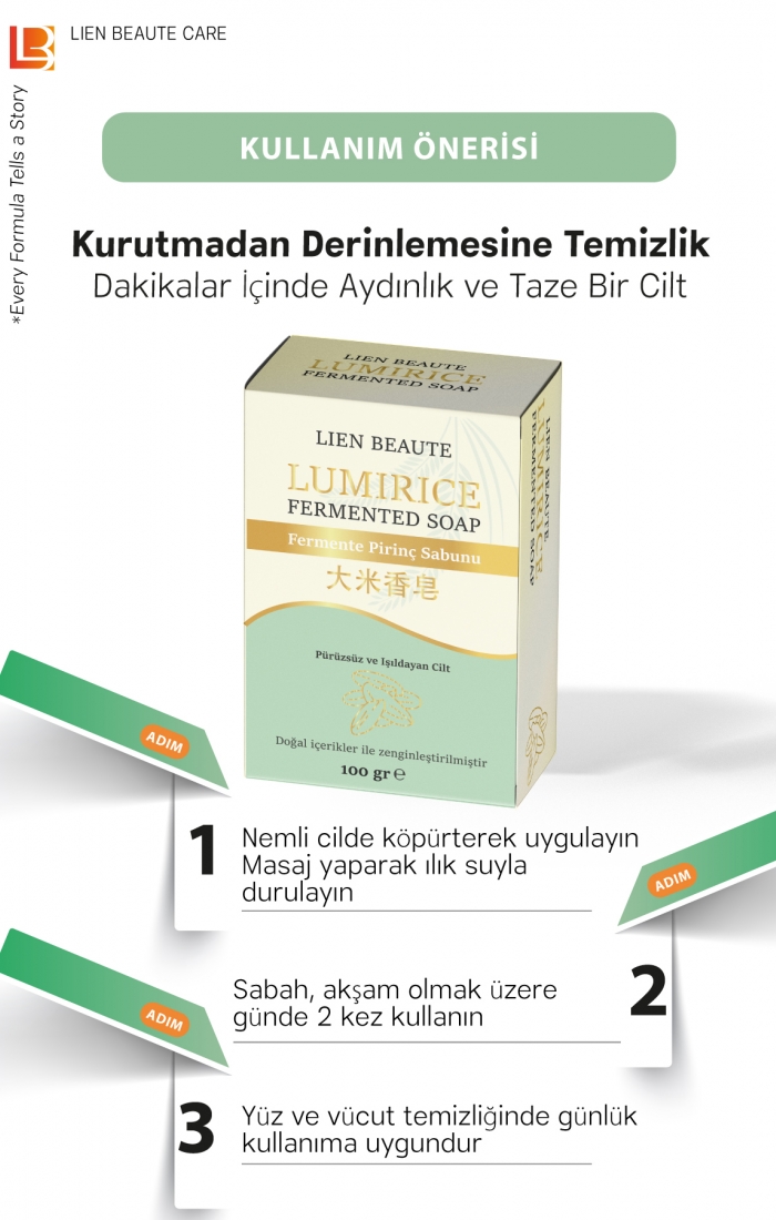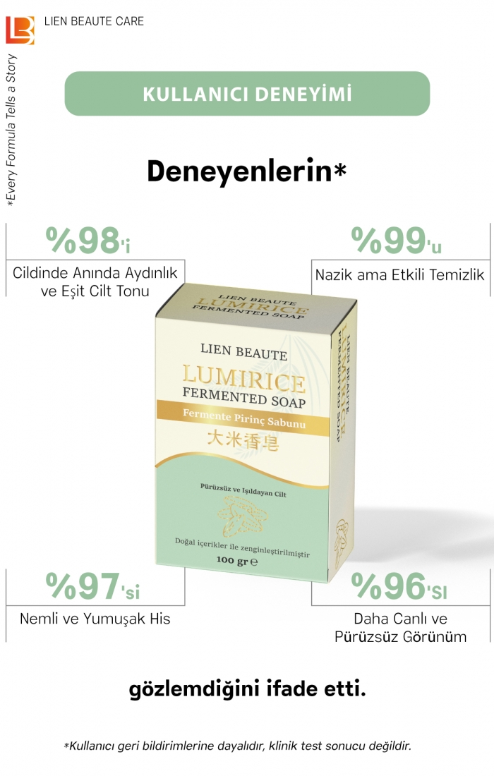 LumiRice Fermente Pirinç Özlü Sabun Pürüzsüzleştirici, Aydınlatıcı, Renk Eşitleyici, Karşıtı