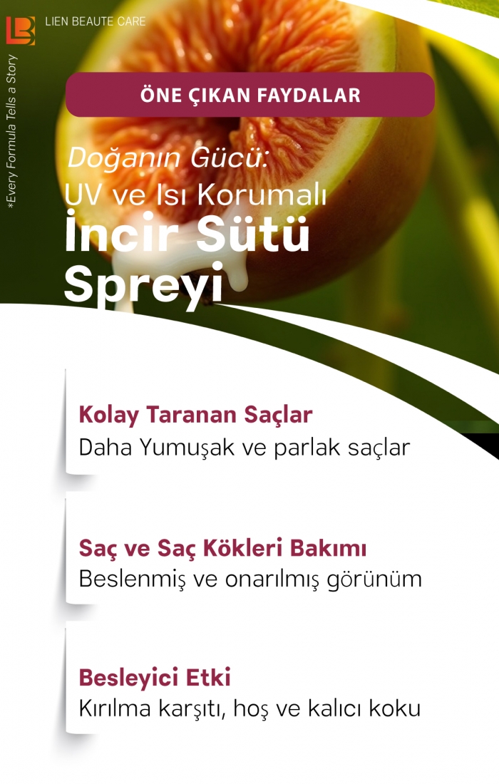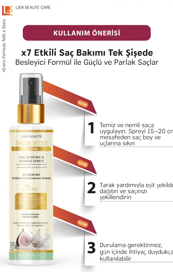 UV Korumalı İncir Sütü Saç Koruma ve Onarım Spreyi x7 Etki, Vitamin Karışımı & Bitkisel Protein